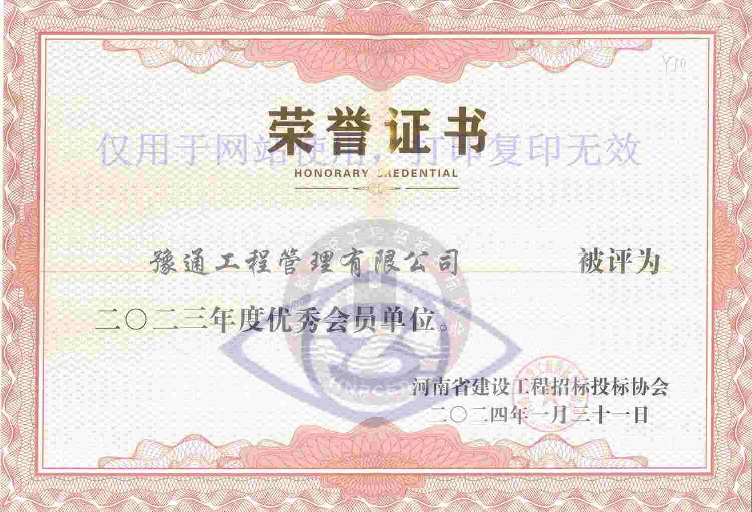 近日,河南省建設(shè)工程招標(biāo)投標(biāo)協(xié)會發(fā)布了《河南省建設(shè)工程招標(biāo)投標(biāo)協(xié)會關(guān)于2023年度優(yōu)秀會員單位評選結(jié)果的通知》(豫建招協(xié)字〔2024〕6號),豫通工程管理有限公司榮獲“2023年度優(yōu)秀會員單位”稱號。