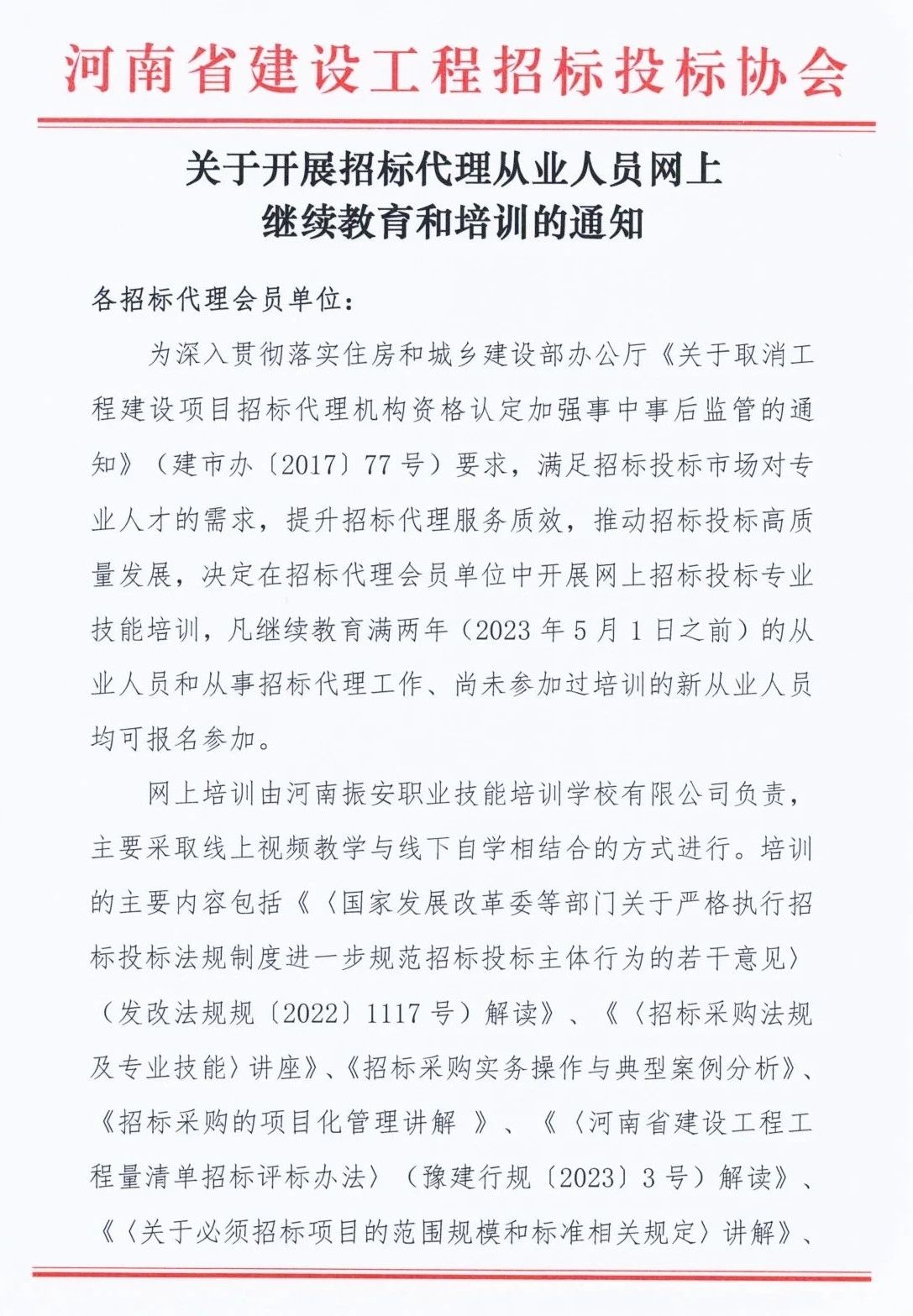 關(guān)于開展招標代理從業(yè)人員網(wǎng)上繼續(xù)教育和培訓的通知2025/03/04 09:06