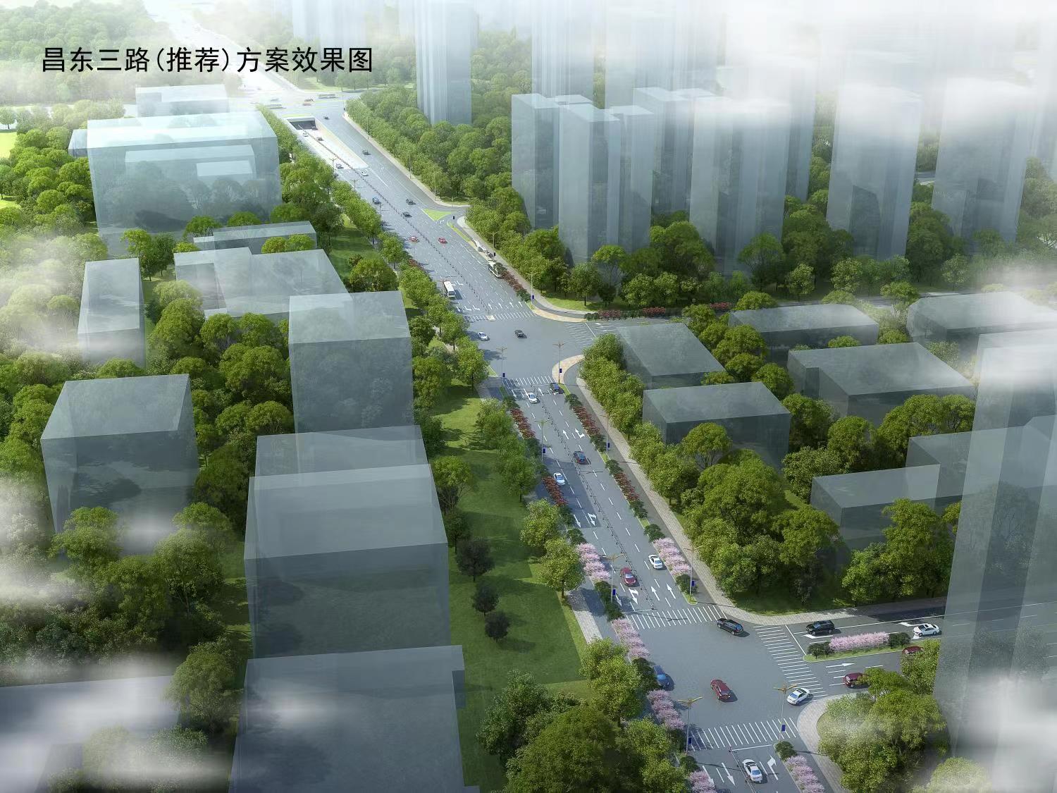 6)昌東三路西起胡板路,東至站前三路,全長(zhǎng)812m,規(guī)劃為城市次干道,道路紅線寬為32m,雙向4車道,設(shè)計(jì)速度為40km/h。