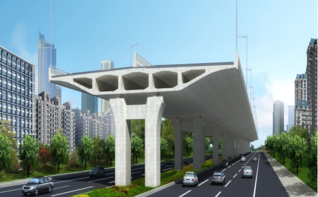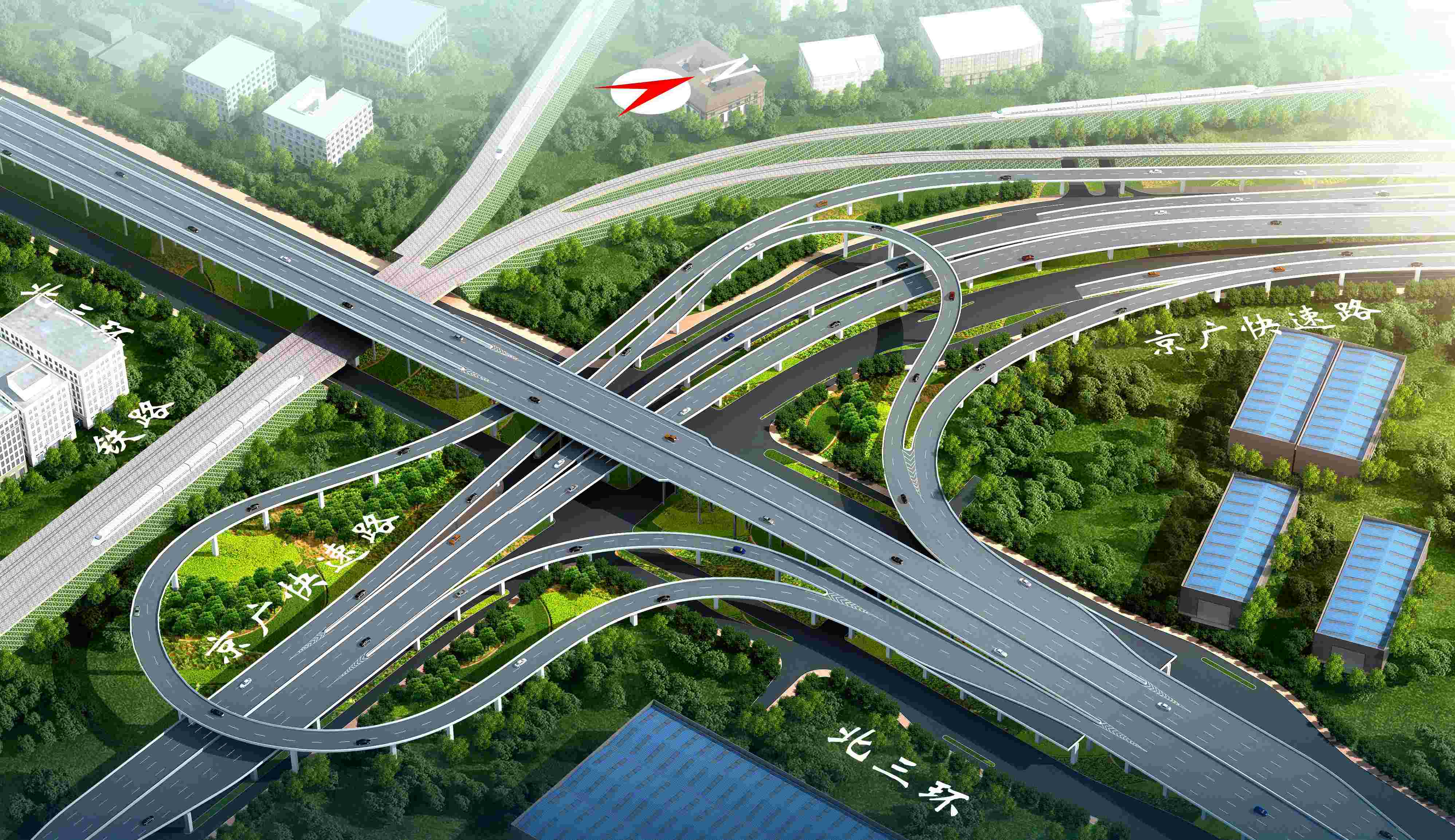 鄭州市京廣快速路二期(北三環--連霍高速)工程的起點接現狀北三環立交,終點接現狀連霍高速互通式立交,在江山路和天河路交叉口沿天河路向北約750米處落地,全長約4.6公里。中間跨越京廣鐵路和賈魯河兩個重要節點,主線為全高架橋,雙向六車道,橋寬25.5m;平行匝道橋寬8.0m,定向匝道橋寬8.5m;地面橋梁與道路同寬。本工程主線大體呈南北走向。全線共布置8條(4對)平行匝道,2條定向匝道(定向匝道與既有橋梁需拼寬),1個立交(連霍高速立交)。主線高架橋采用城市快速路設計標準,設計車速80Km/h,地面道路采用城市主干道設計標準,設計車速50Km/h。本工程建安費約13.3億,總投資約15.3億。